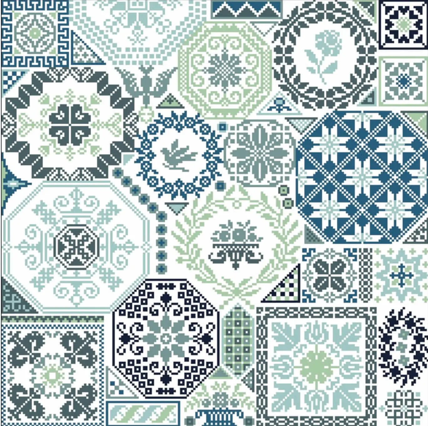 Beautiful patterns and colors in this celebration of greens and blues! Stitch Count: 196 x...