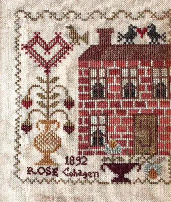 Influenced by a sampler done in 1833, this one features a large rosebud basket, and...