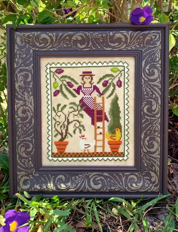 Trudy is in a precarious position, all in the name of picking the olives for...