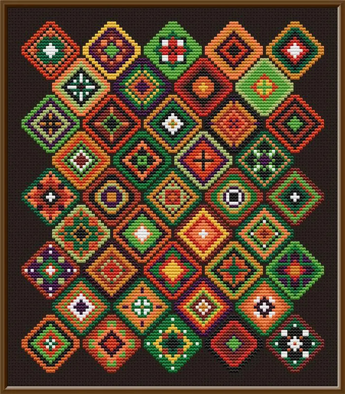 Beautiful harvest tones in this quilt recreation. Stitch Count: 171 x 171 Fabric:Â 14 ct. Espresso(or...