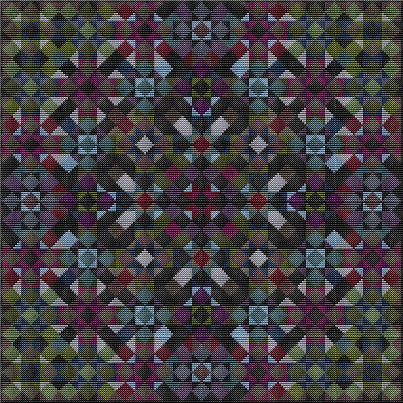 Teals, blues, purples and greens - always a striking color combination! Stitch Count:Â 189 x 189...