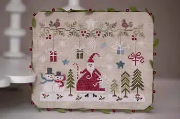 Santa's on a hike in the woods, and he has a bunny, birds and reindeer...