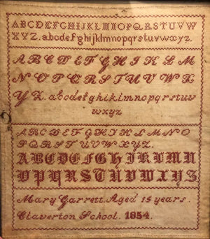 Mary did a beautiful job, practicing her alphabets back in 1854. She included five alphabets...