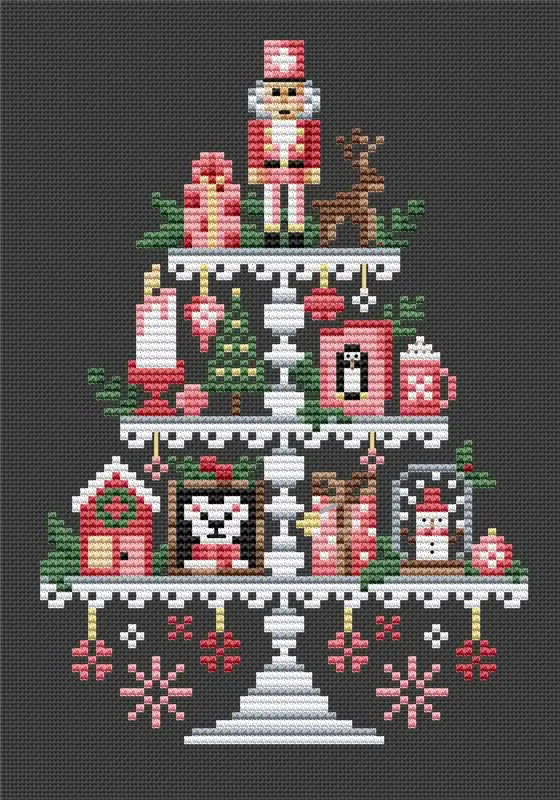 Holiday smalls decorate this tier - from the nutcracker and reindeer to a snowglobe, house,...