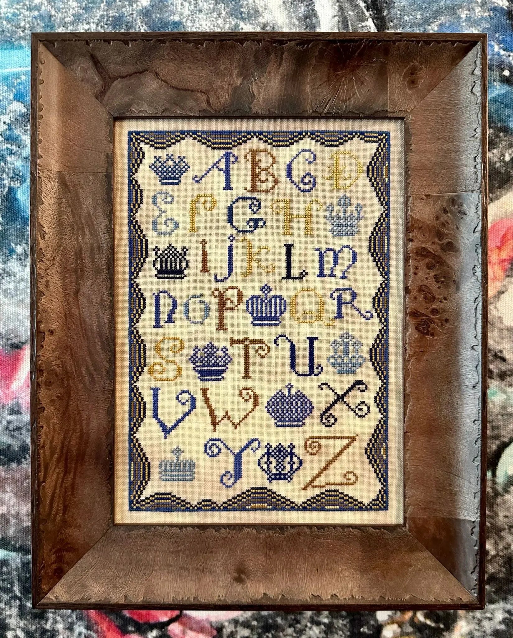 Blues, browns, and olives in this fun alphabet with crowns. Stitch Count:Â 111 x 163 Model...