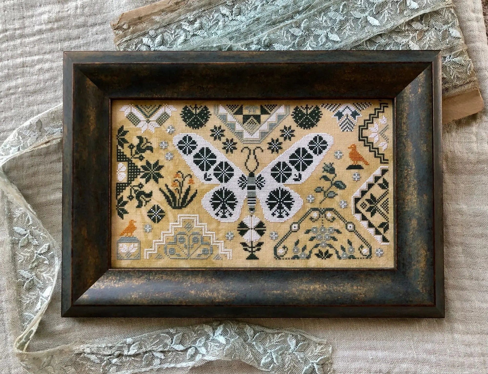 A moth stitched up in the colors of lakes and grass! A cute little design....