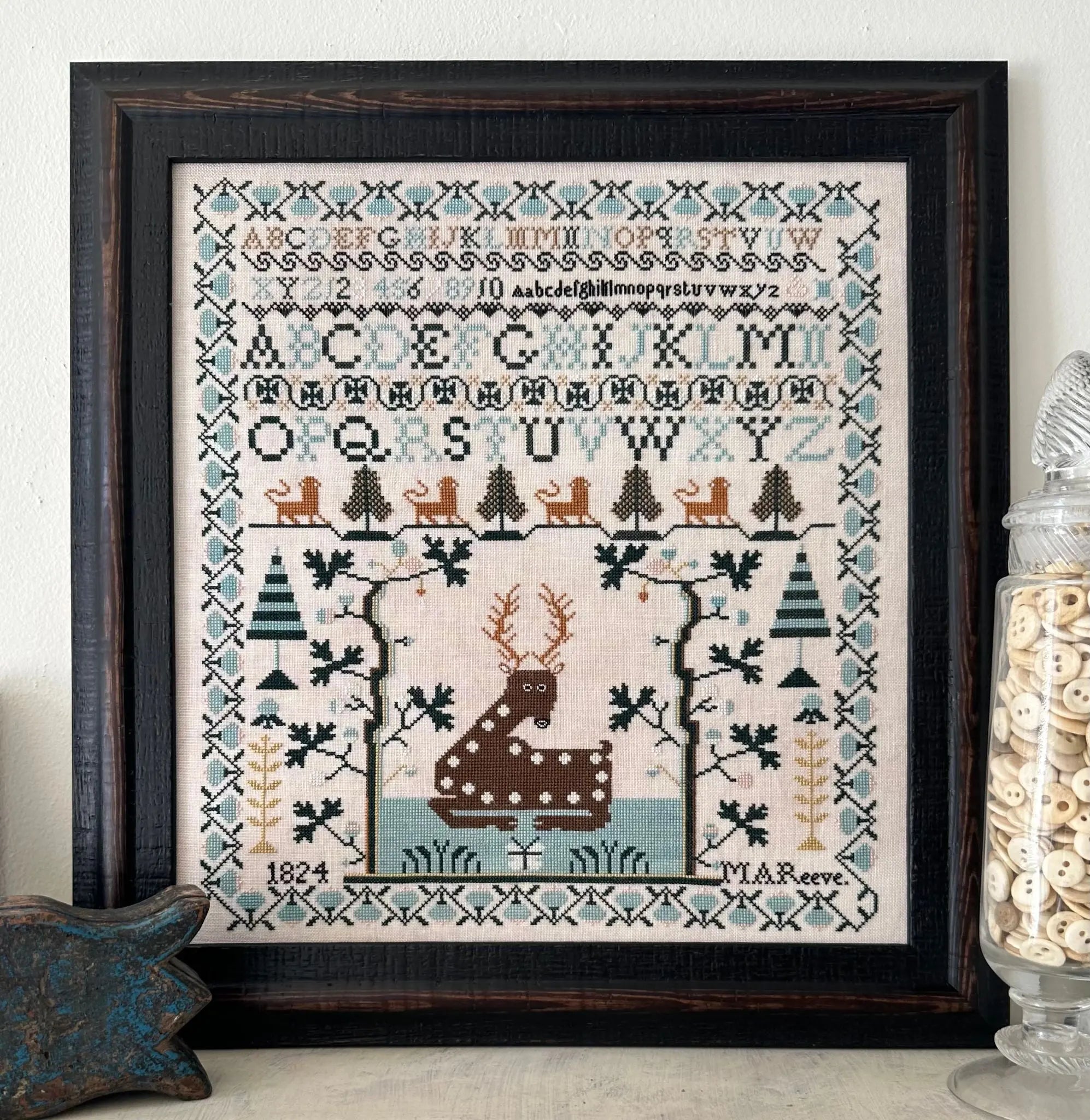 I am loving the colors in this reproduction! Also, the very particularly spotted deer and the striped evergreen trees. I think MA Reeve had a sense of humor.