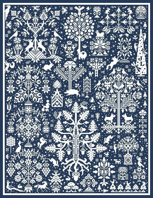 I love this one! Beautiful trees with patterns, birds and notes, and Quaker type bases...