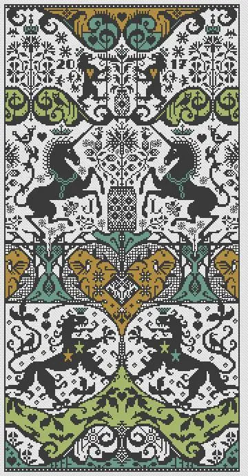 Beautiful symmetry in this piece, with unicorns, lions, flowers and vines. Stitch Count: 171 x...