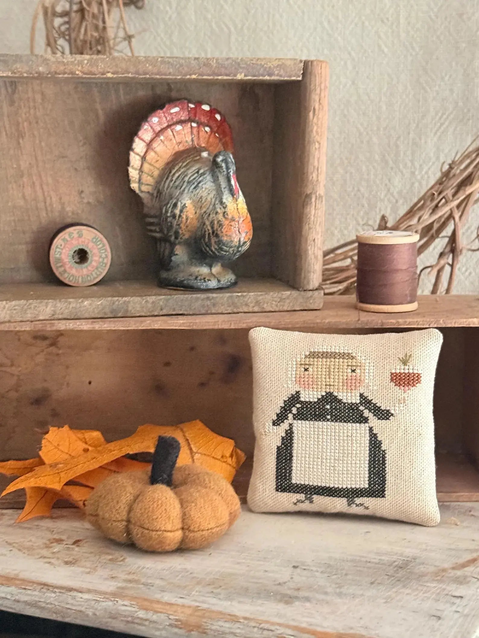 This little pilgrim lady is making beets to go with the turkey today! Stitch Count:...