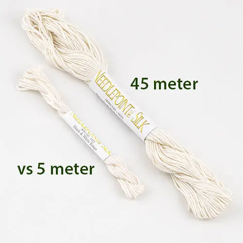 This beautiful 8-ply silk line is reeled (not spun), making the filaments longer and stronger. You will also find this gives an extra luster to the thread. This is a Hank, which comes with 45 meters