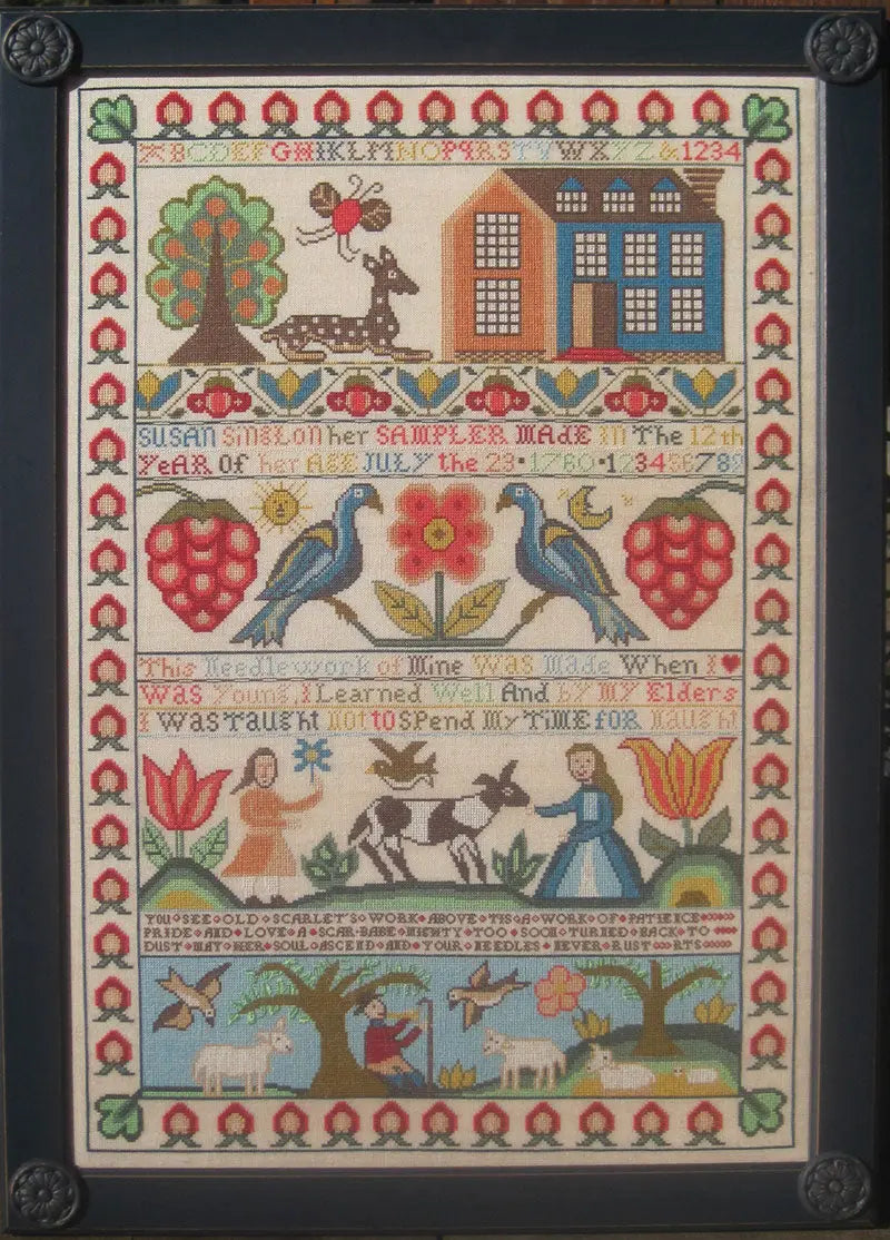 This New Hamsphire sampler was designed after a mid-eighteenth century piece. It includes a delightful...