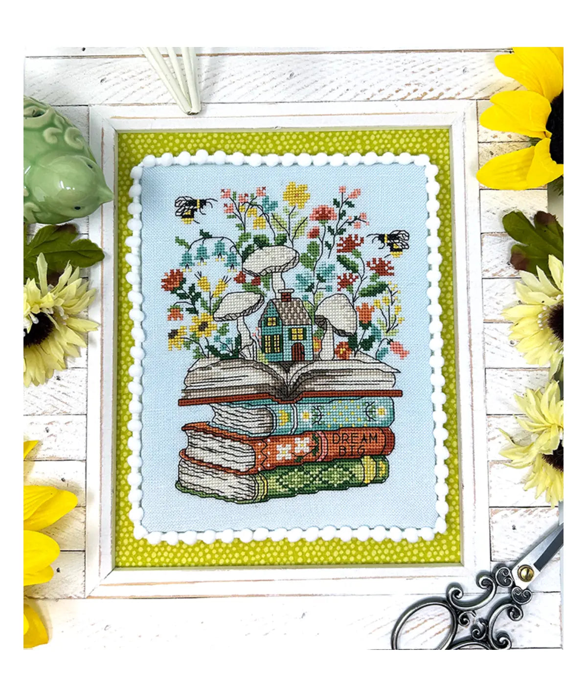For the book lover - a pile of tempting books, from which dreams grow. Stitch...