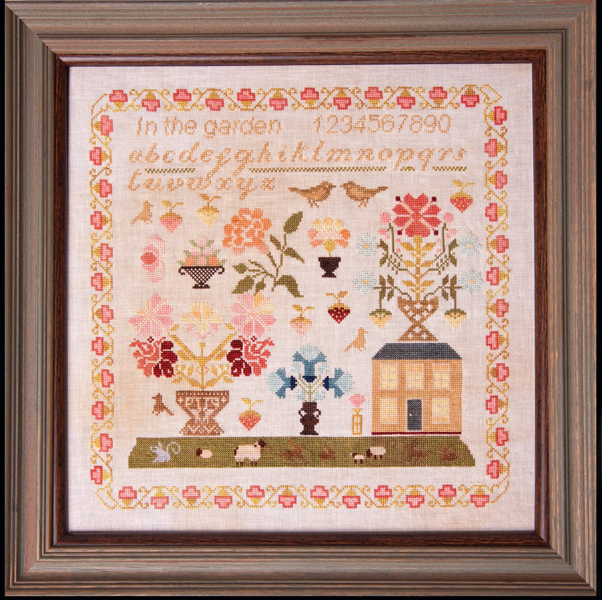 Stitch your way around the garden with cross stitches and specialty stitches in this pattern....