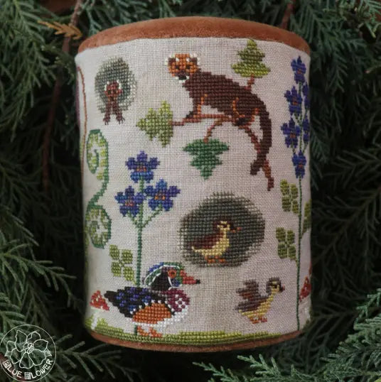 This drum shares the busy community of life in a spring tree stump! Stitch Count:...