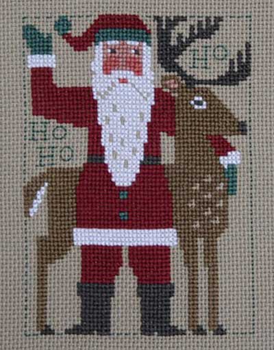 Santa is hanging out with his favorite reindeer (and it's not Rudolph! Although you could make it Rudolph...) Stitch this collectible as an ornament or pin keep.