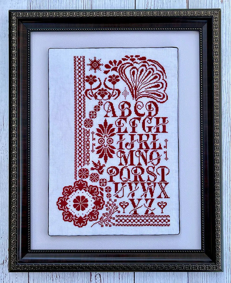 A beautiful addition to your red samplers - this one with Art Deco letters and motifs!