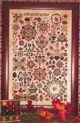 The colors and motifs in this sampler are just gorgeous, aren't they? They definitely say Autumn, although I'd leave it up year-round!