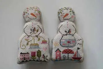 Who says you can't celebrate snowmen in the spring and summer? Flowers, robins, pink houses, and a day at the beach decorate these two little ladies.