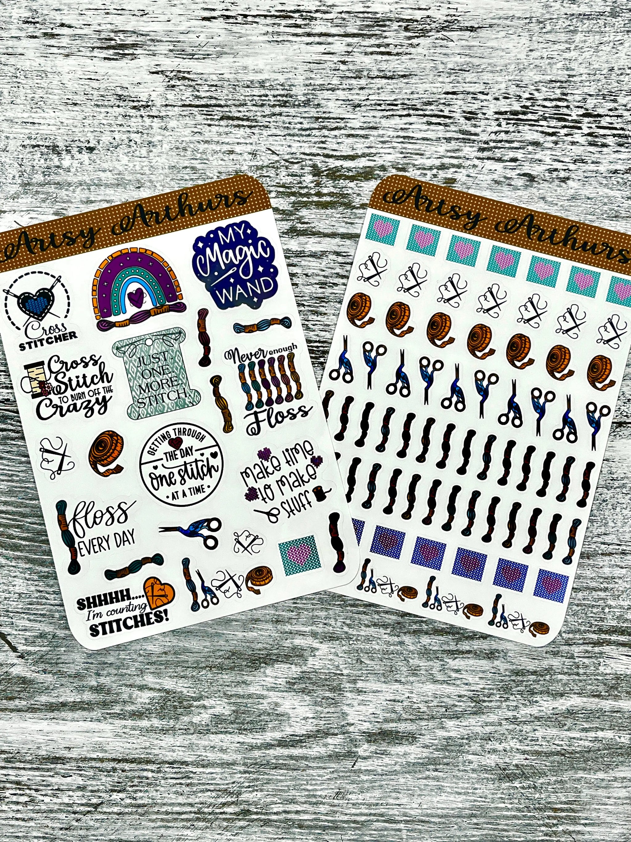This set includes both sheets of matte stickers as shown, perfect for adding to your stitching calendar, planning pages, or on notes to friends. 90+ stitchers in all!