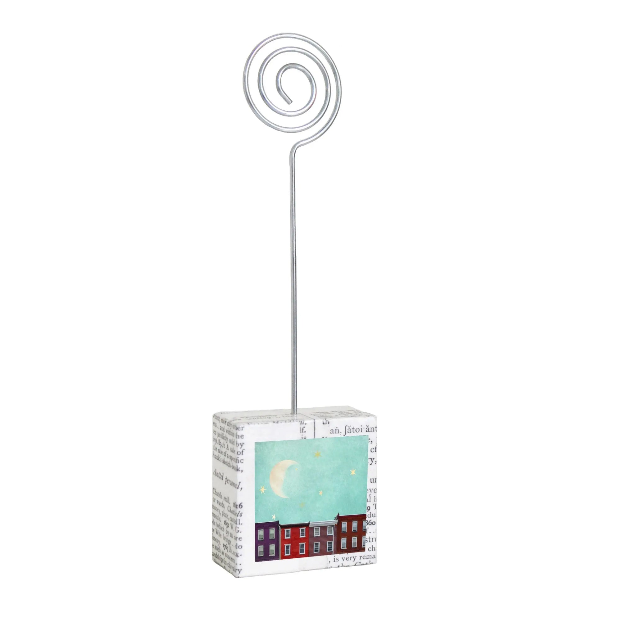Hand-made in Philadelphia with salvaged wood and paper from damaged library books, giving new live to otherwise discarded materials. Featuring the delightfully whimsical art of Michelle Ciarlo-Hayes.