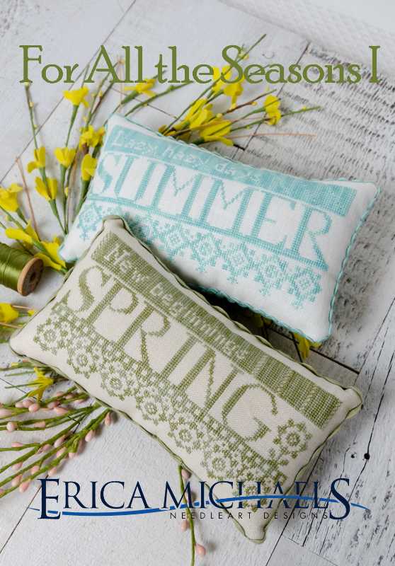 Fabric: Spring = 37 ct. Russian Tea Cake by Legacy Linens, Summer = 37 ct. Aesthetic White by Legacy Linens.