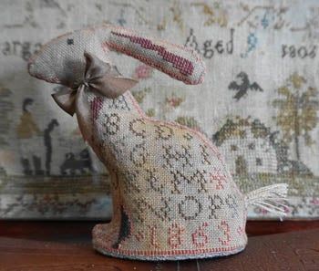 This cute sampler bunny will look adorable perched in the middle of your spring designs. Stitch then sew and off you go.
