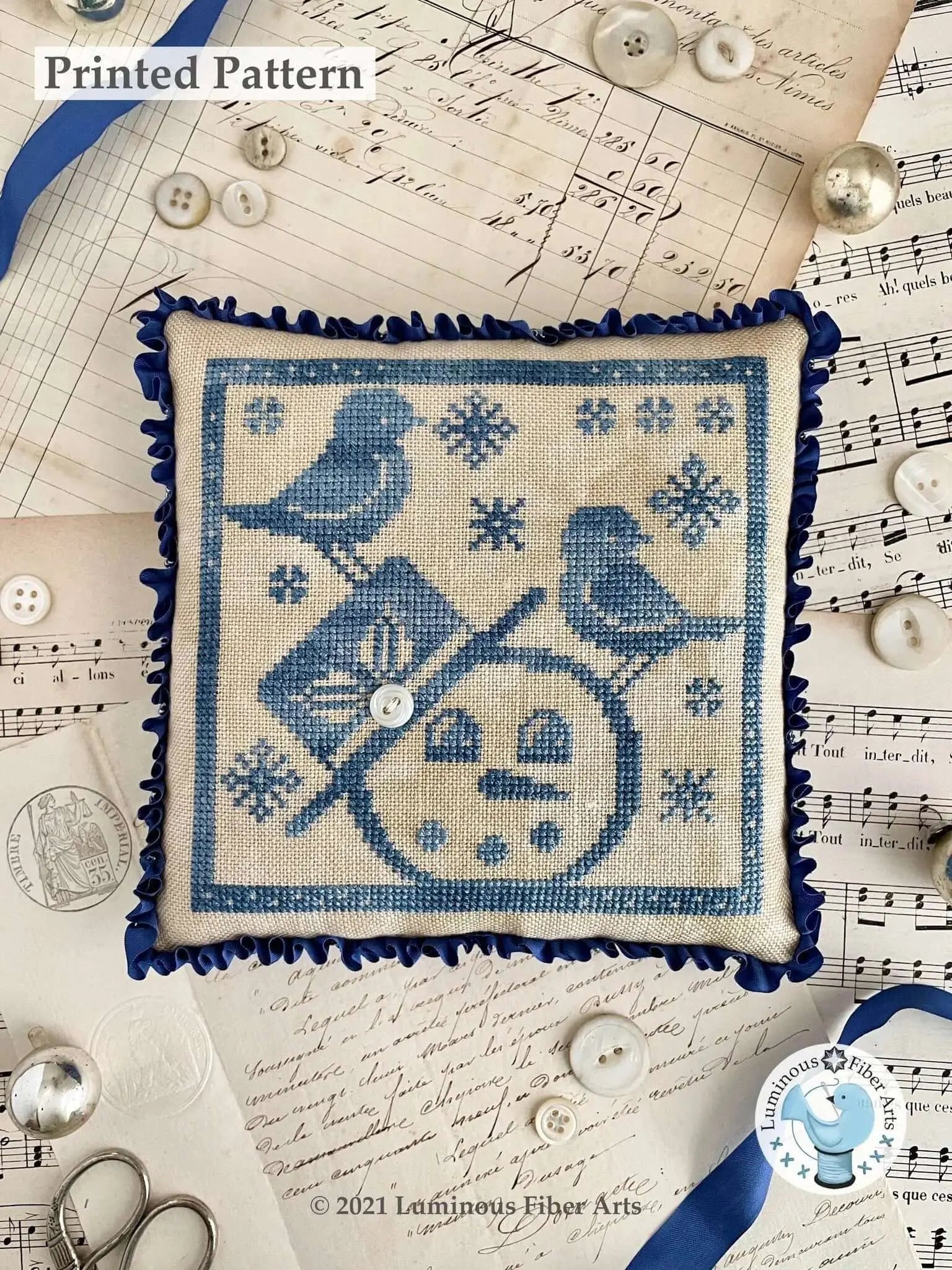 This one is one of my all time favorites - check out the vintage snowman, hosting a bird part in the midst of a snowstorm. Cute as an ornament, a pin pillow, or framed. And you can leave it up through the winter months - a bonus!