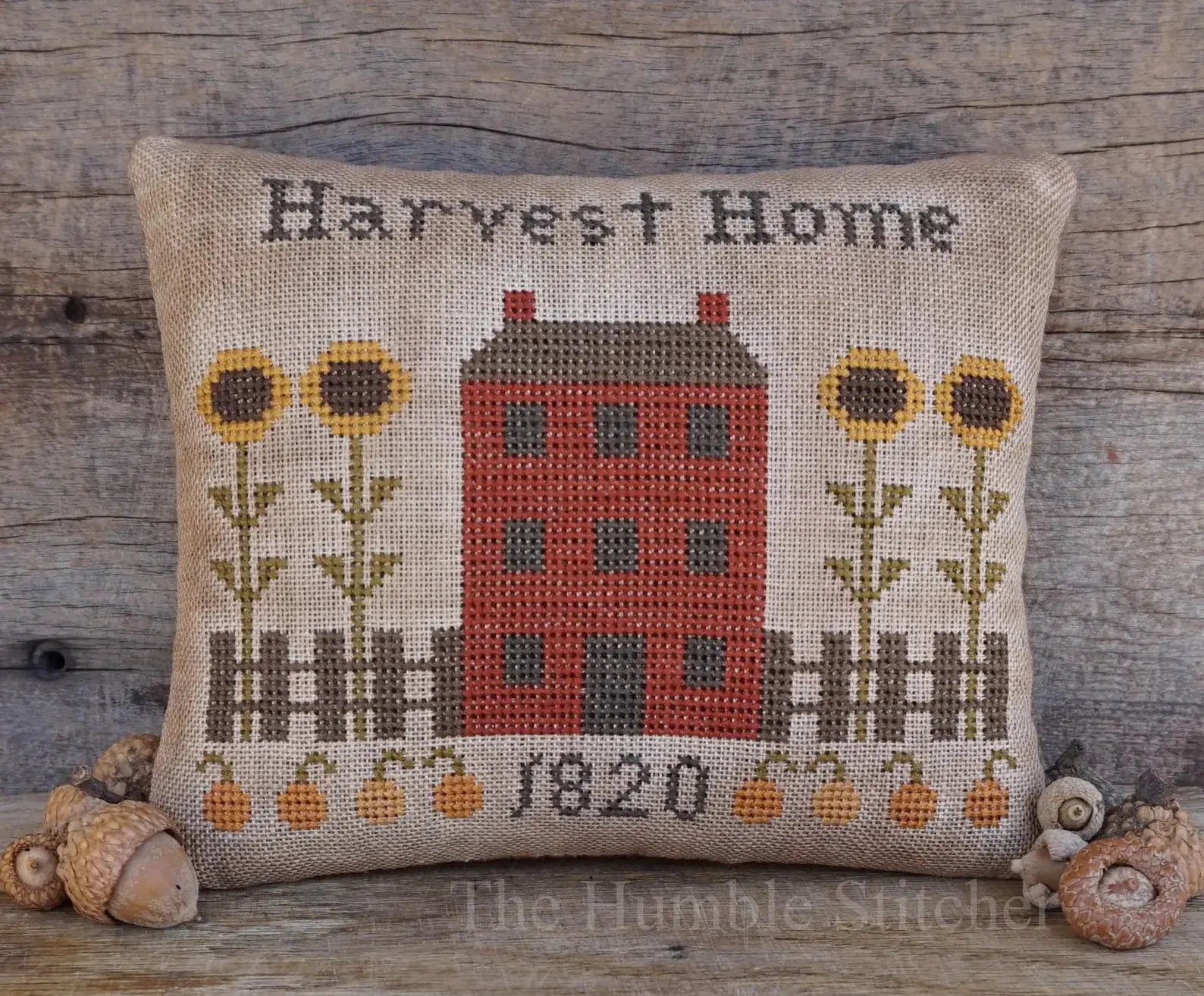 A red house in the middle of a sunflower patch (and it looks like a pumpkin patch as well). The perfect fall scene!