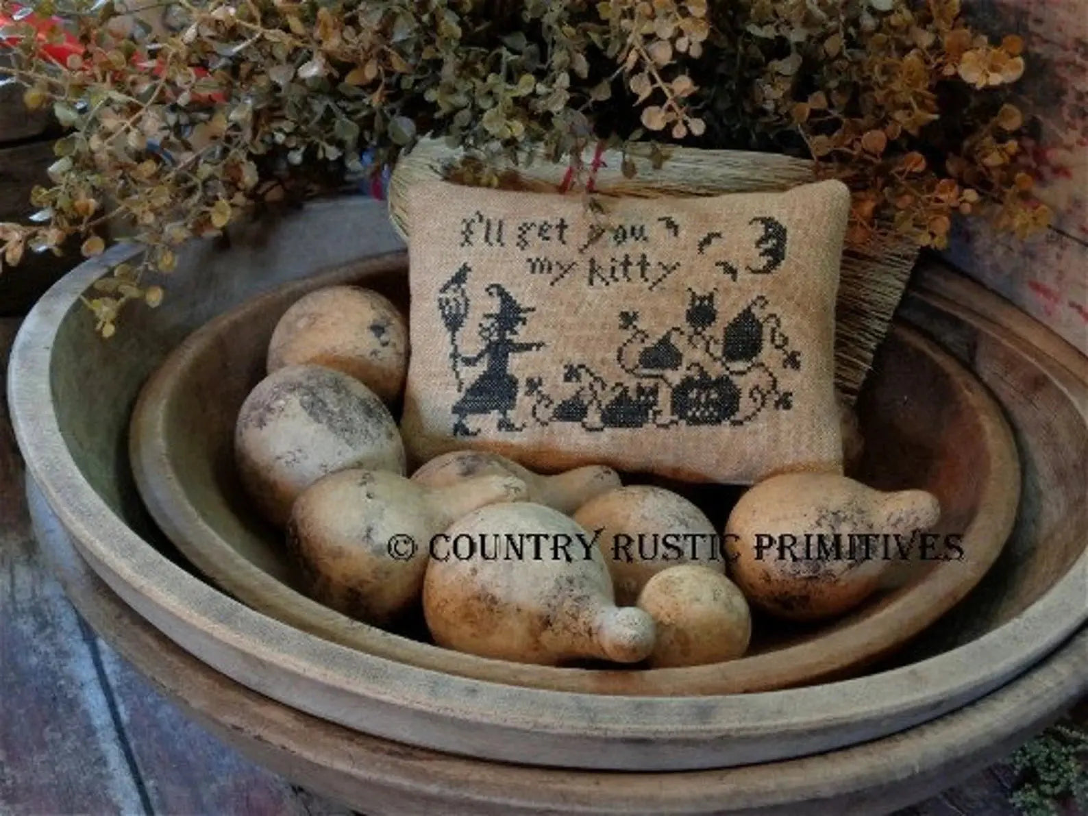That cat thinks he is well hidden in the pumpkin patch, but Mrs. Witch is determined to take him for a ride!