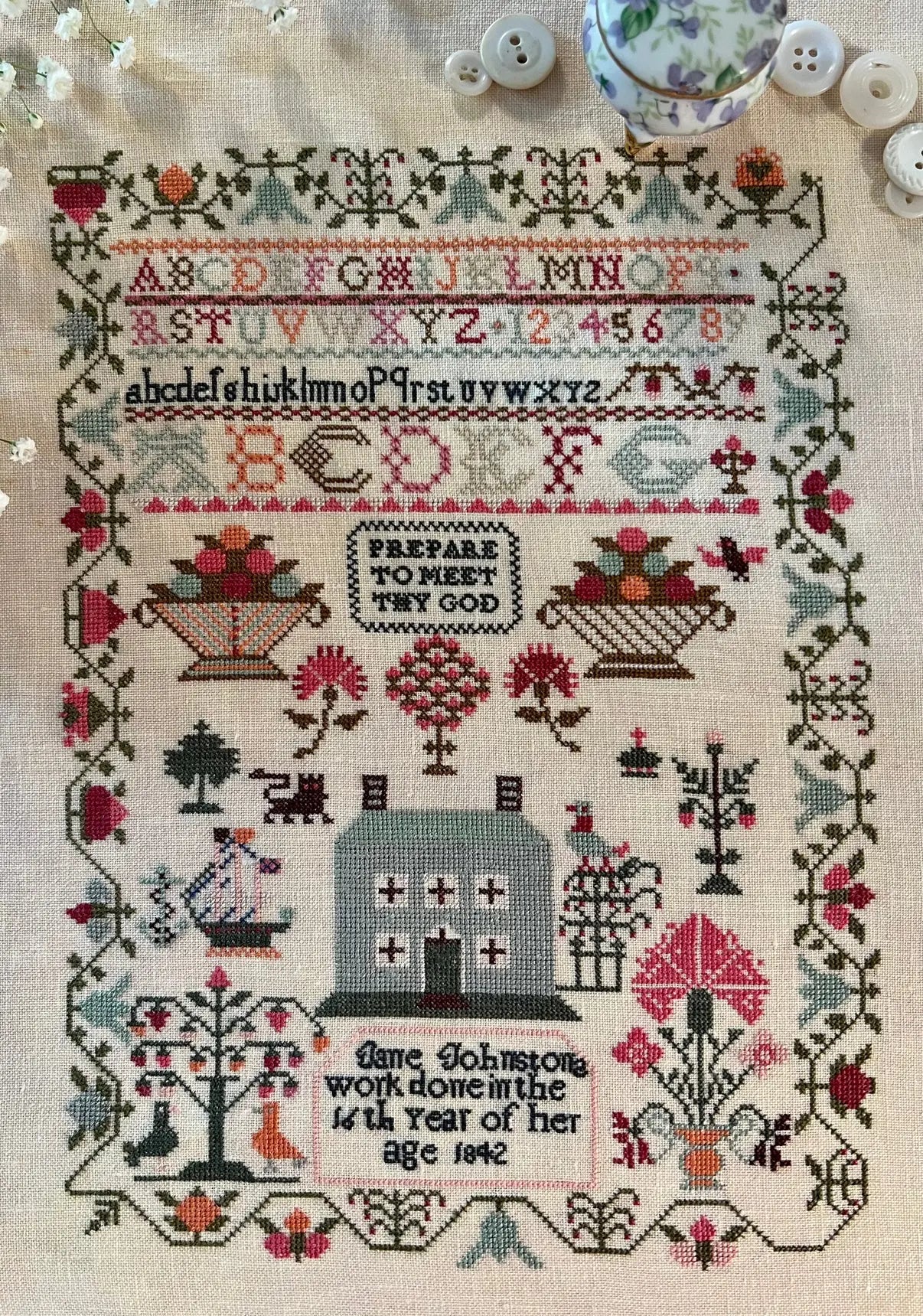 The colors in this one - just beautiful, aren't they? Jane stitched her sampler in 1842 and seems to have had a good eye for color.