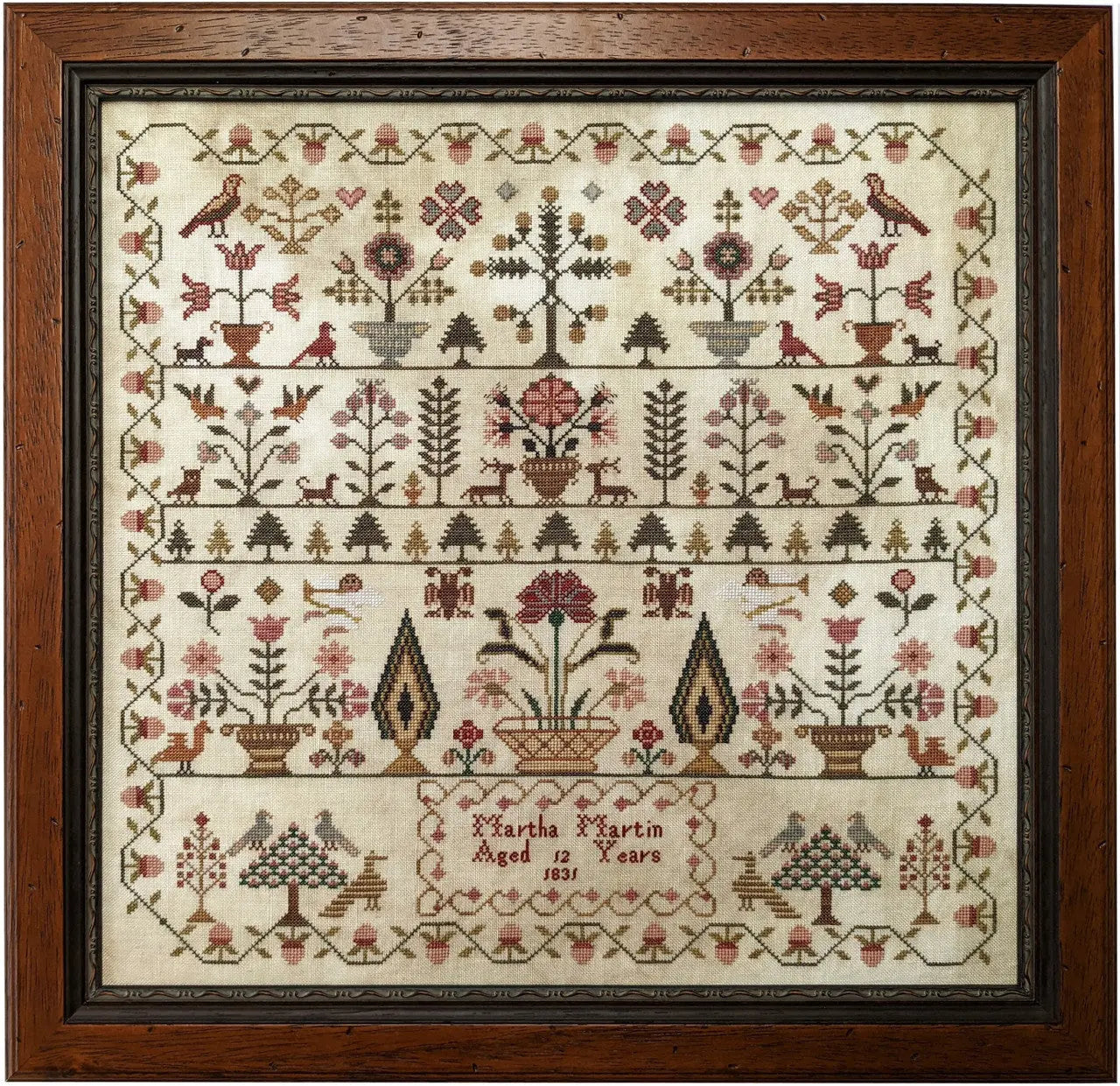 Mary included so many beautiful things in her sampler. Truly a nature lover at 12 years old, because she has a bounty of trees, flowers, and animals tucked around.