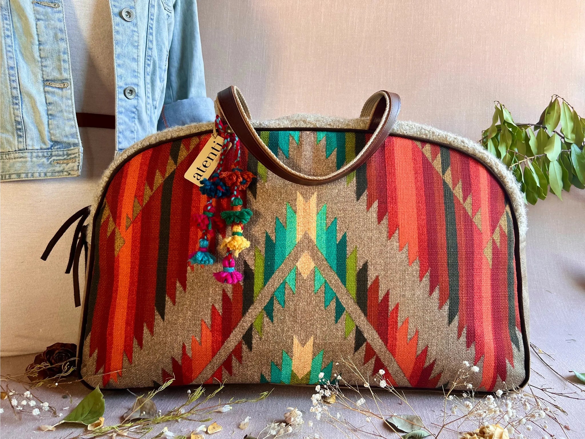A fun and quirky bird design with double straps, an inside zipper pocket and an inside divided pocket, 25" zippered opening, and water resistant lining. (Design placement varies slightly per bag.)