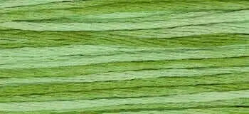 Weeks Dye Works threads are six ply and come in a 5-yard skein. They are hand-dyed which gives each skein a gentle and subtle variegation.