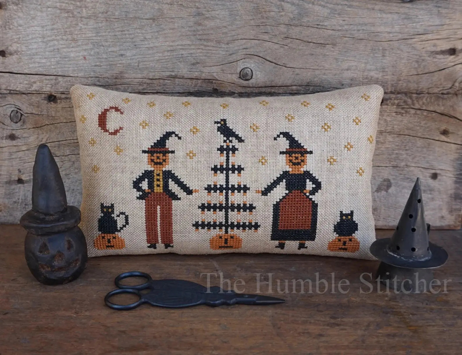 This cute pumpkin couple is celebrating Halloween, complete with a Halloween Tree! And I love their cats - one a little rounder than the other.