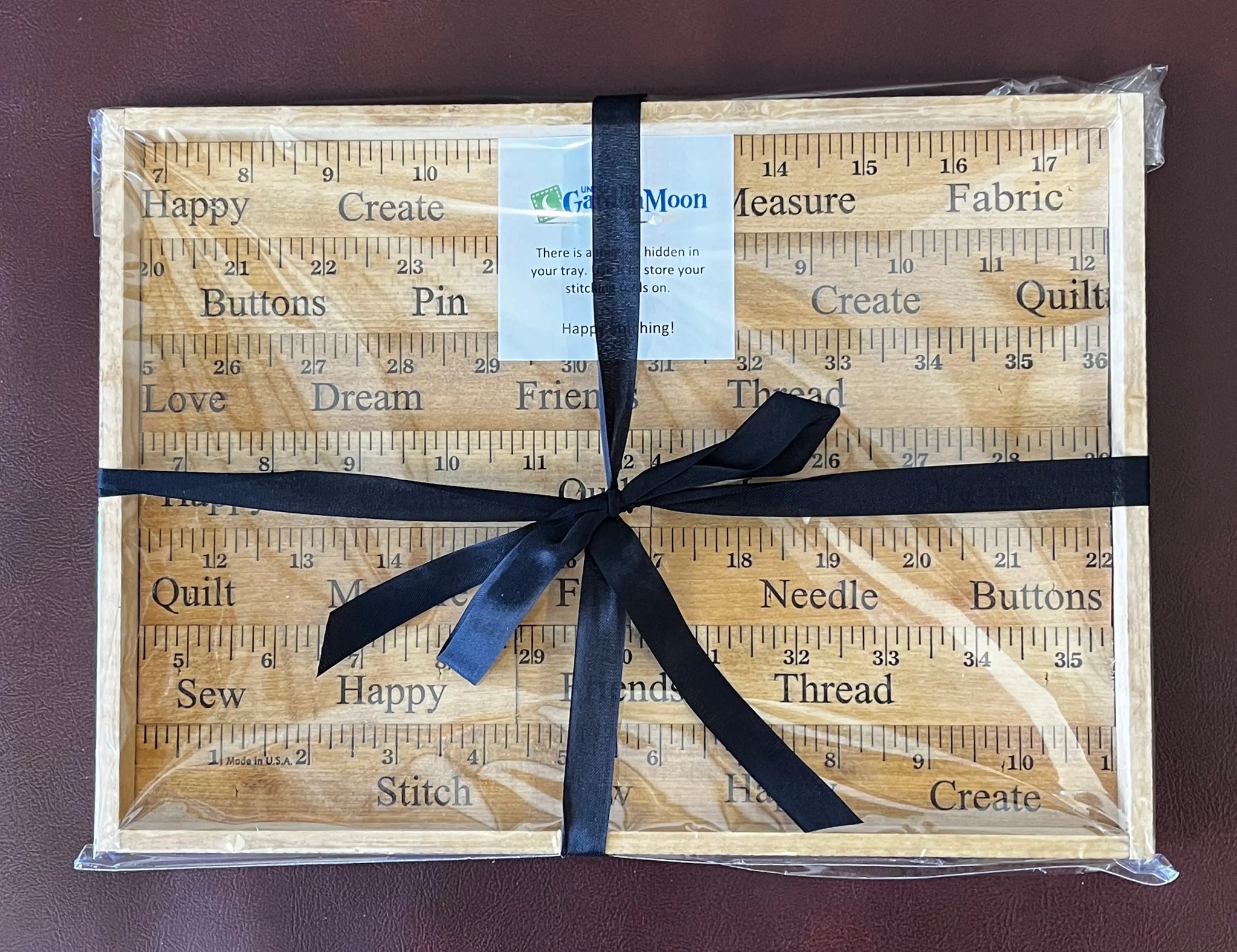 This is the perfect little stitching tray to keep your scissors, floss ring, needles, etc right by your side. It even has a little magnet sandwiched in there for a needle holder!