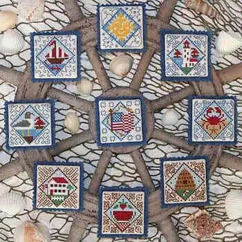 DMC: White, 312, 334, 367, 420, 422, 645, 677, 838, 898, 3820, 3841, 3777
