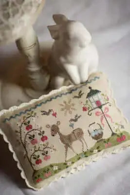 A beautiful spring scene with the deer checking out the new apples, a bunny peeking out of his basket, and a brand spanking new birdhouse for some lucky bird!