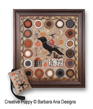 No broomsticks for riding back in 1692, but the giant crows were happy to help out. There's a cute Halloween Tree scissor fob with this design, too. Template included if you'd like to finish this with a similar wool penny border.
