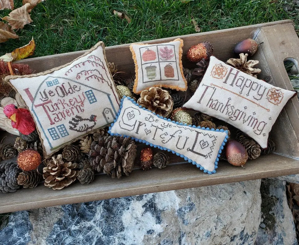Four new designs for your Thanksgiving bowls! Not a lot of stitching on any one of them, as the letters always go quickly. My favorite in this batch is Be Ye Grateful!
